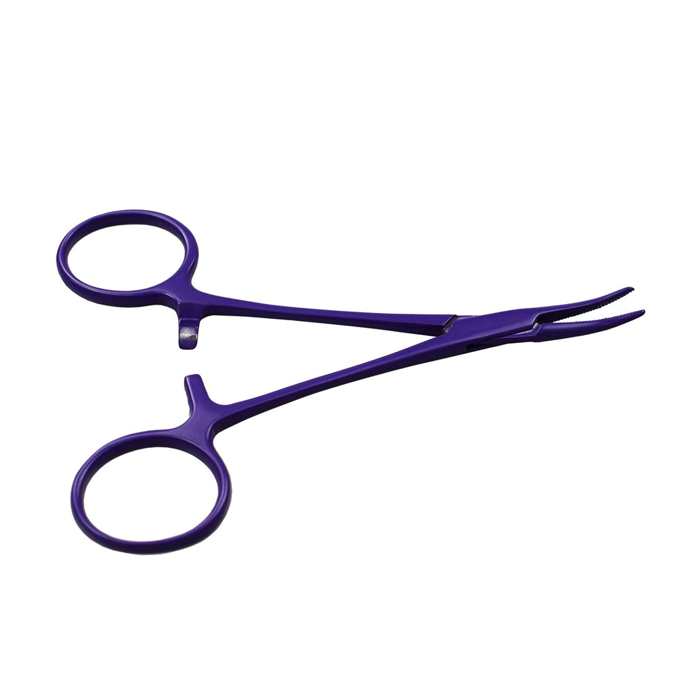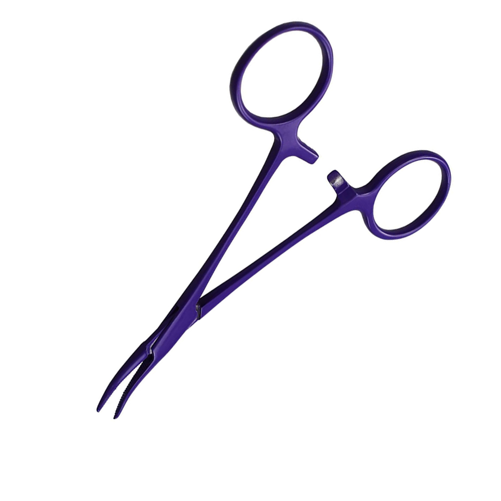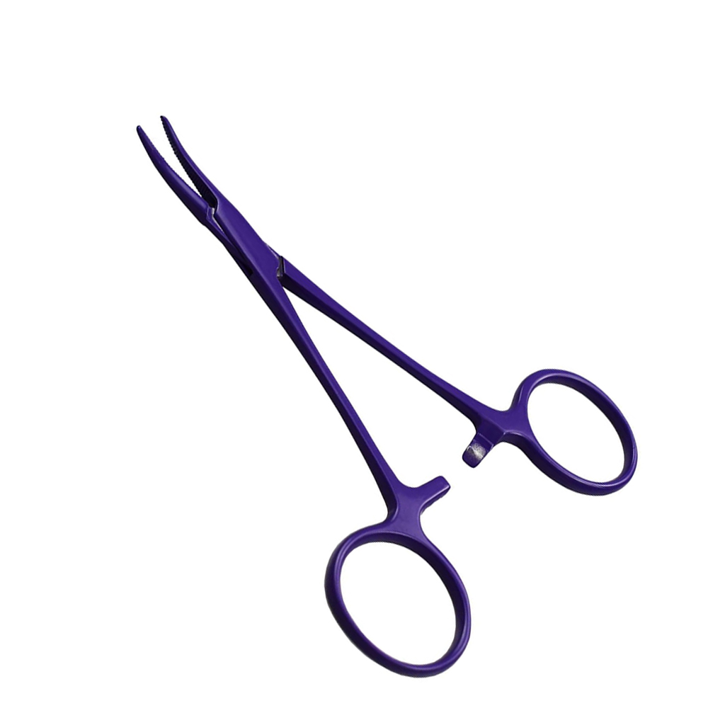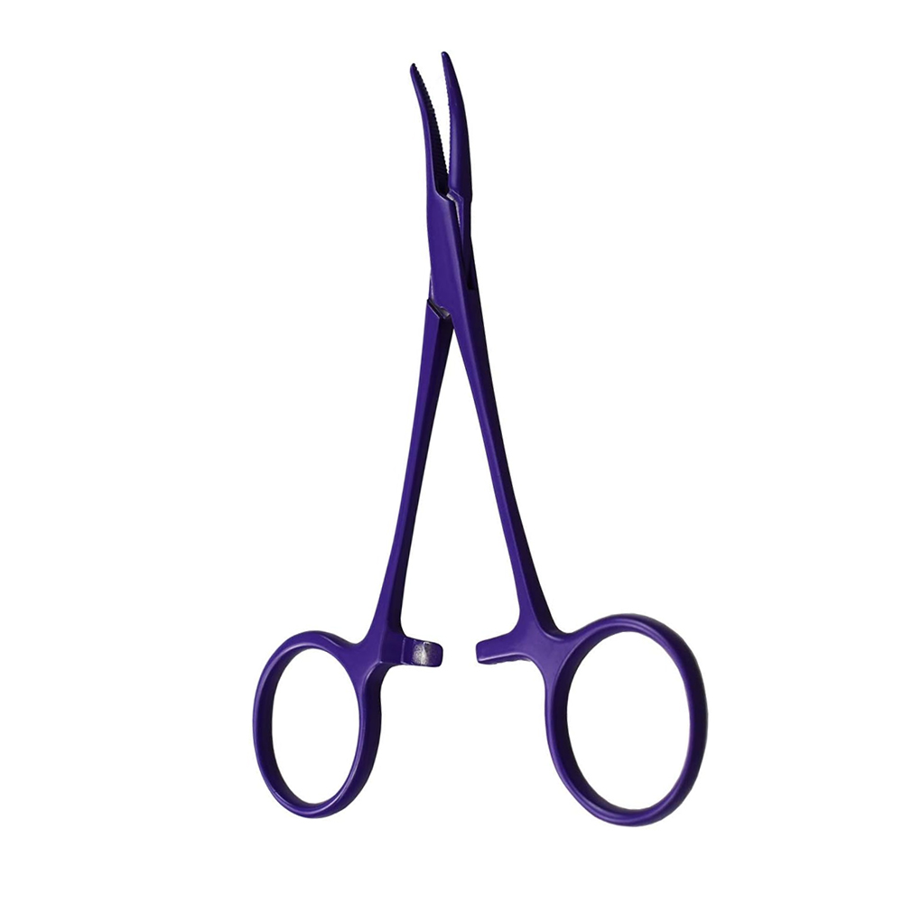 Curved Hemostatic Forceps with Purple Coating: