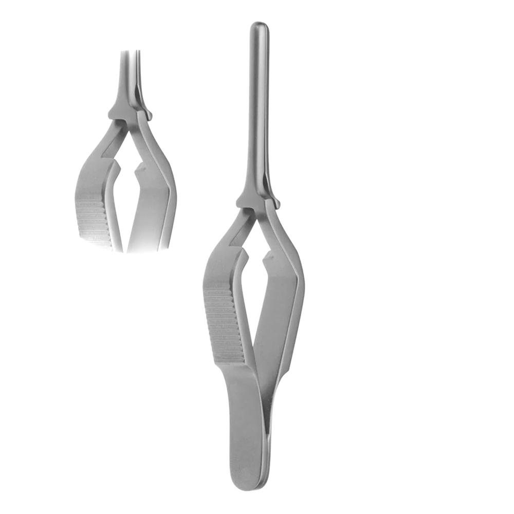 Fine serrations provide secure grip without damaging vessels