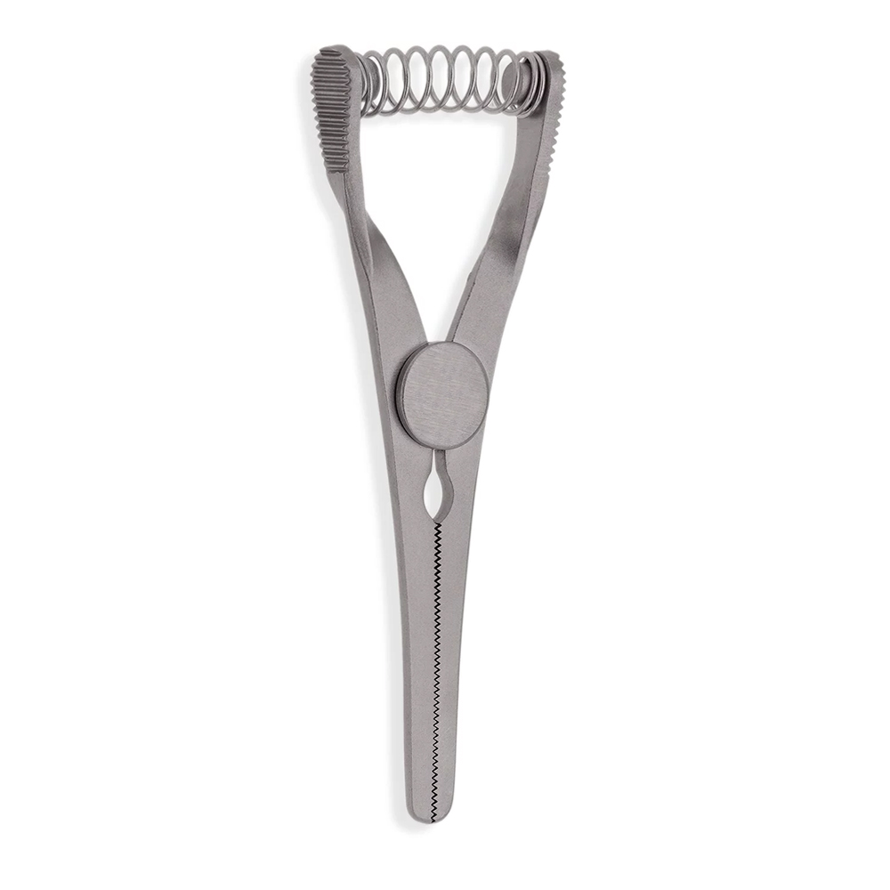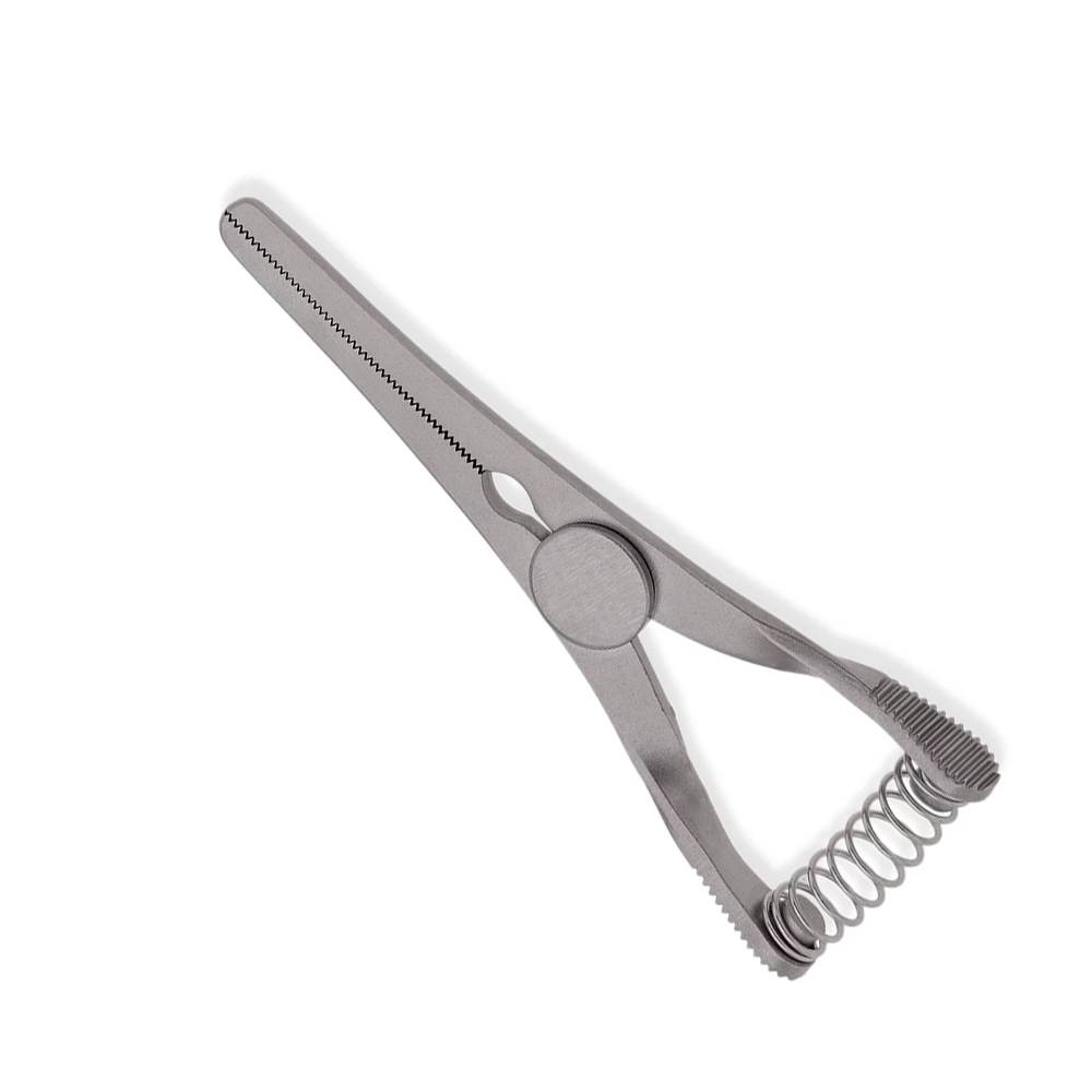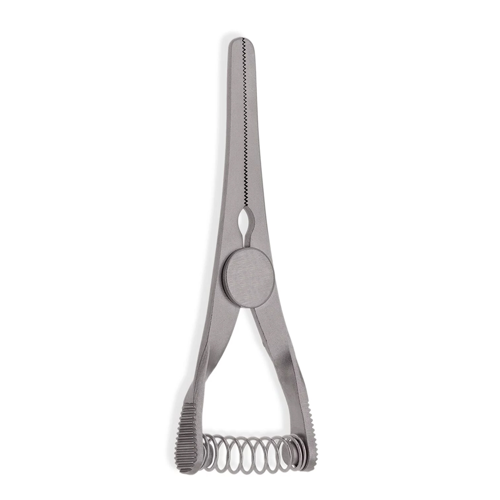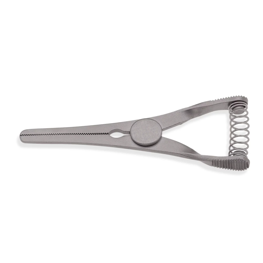 Fine serrations provide secure grip without vessel damage